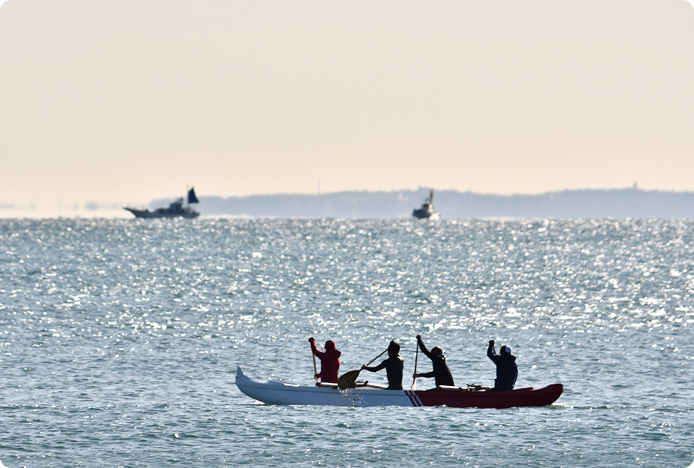 一人ひとりが呼吸を合わせ、一本のパドルに想いを乗せれば、驚くほど力強いスピードが生まれます。仲間とともに波に乗る特別な時間を楽しみましょう。
