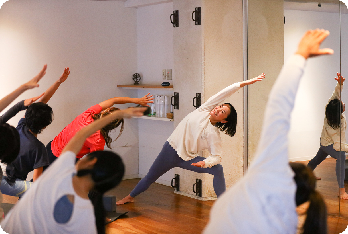 癒しを感じるリラックス系、流れるように動くフロークラス、基本のアーサナを丁寧に深めるクラスなど、多様なスタイルを楽しめます。